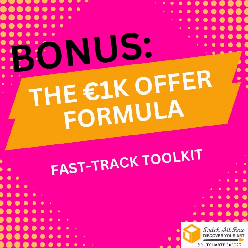 You’re one offer away from proving what’s possible. The €1K Offer Formula shows you how to design, price, and sell your first €1,000 art offer — with the exact steps real artists use to turn creativity into income. No fluff, no guesswork.Just a focused system that helps you finally get paid for your art and build unstoppable momentum.